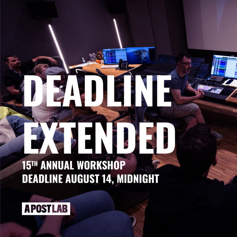 The deadline for the 15th APostLab annual post-production workshop has been extended to Wednesday, August 14th at midnight (CEST).
