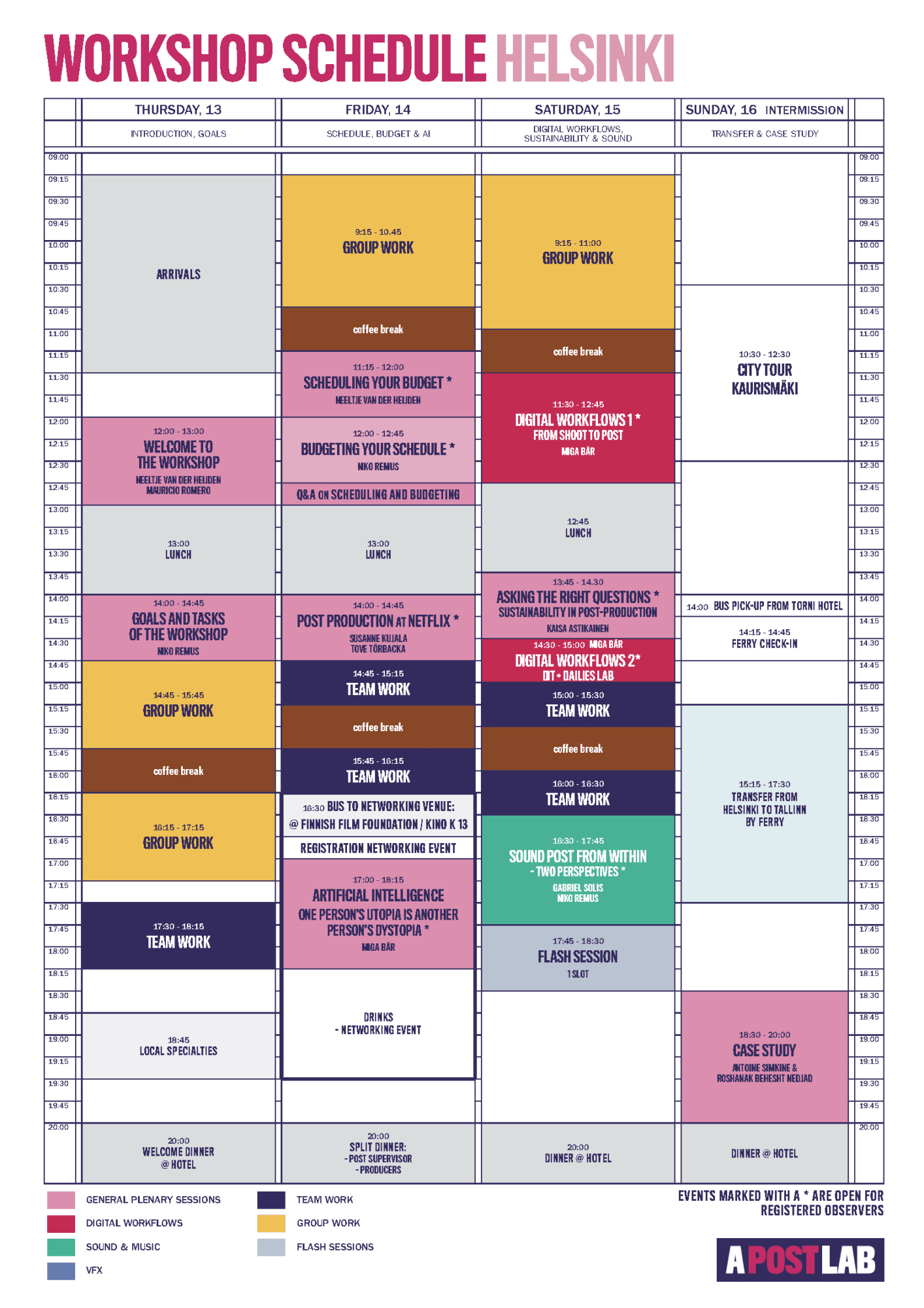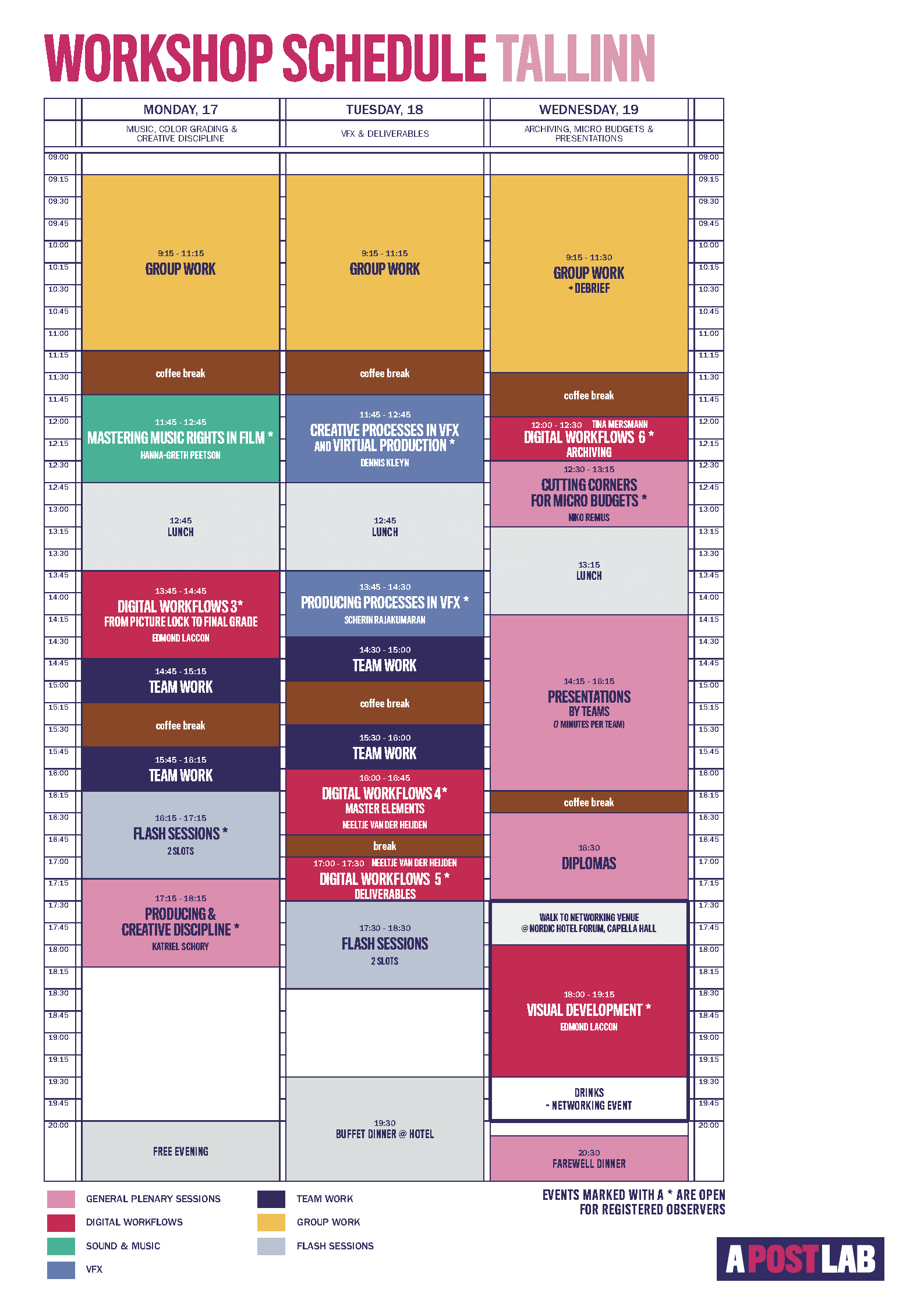 In addition, smaller teams are created within the group, consisting of a producer and one or two post supervisors (both participants) to work in more detail on budgets, workflows and schedules for the given projects.